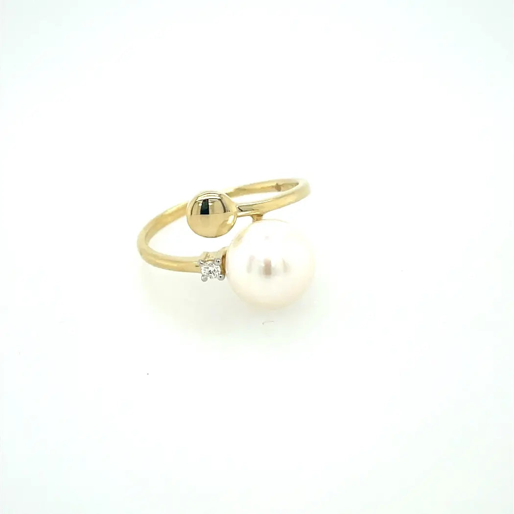 Ring in 14 kt Gelbgold mit Süßwasser Perle und Brill. 0,03 W/si.
