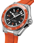 Die Seamaster Planet Ocean ist eine Hommage an das Taucheruhrenerbe von Omega und verkörpert auf perfekte Weise das Engagement der Marke für Erforschung, Innovation und Stil. Dieses 42mm-Modell ist mit einem Gehäuse aus poliertem und gebürstetem Edelstahl gefertigt. Die Uhr verfügt über einen Lünettenring aus polierter oranger Keramik mit einer Taucherskala aus weißer Emaille, der innere Ring besteht aus poliertem Titan Grad 5. Das schwarze Zifferblatt wird durch ein mattes Finish abgerundet und besitzt rhodinierte Zeiger und Indizes mit weißer Super-LumiNova. Neben dem gestempeltem Schriftzug in Weiß sind zusätzlich auch vier orange arabische Ziffern aufgebracht. Diese Seamaster Planet Ocean wird vom Co-Axial-Master-Chronometer-Kaliber 8912 angetrieben und mit einem orangen Kautschukband kombiniert, das mit einer Edelstahlverbindung zum Gehäuse und einer Faltschließe ausgestattet ist. Der verschraubte Gehäuseboden auf der Rückseite der Uhr ist aus poliertem Titan Grad 5 gefertigt und mit dem berühmten Seepferdchen-Emblem verziert.