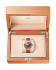 Edelstahl mit oranger Keramik-Lünette, oranges Kautschukband mit Faltschließe, Automatikwerk Kaliber 8912, Gangreserve ca. 60 Stunden, Saphirglas, Durchmesser 42mm, wasserdicht bis 600m, fünf Jahre Garantie