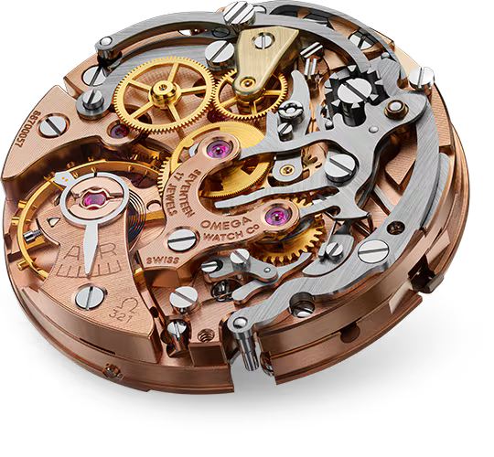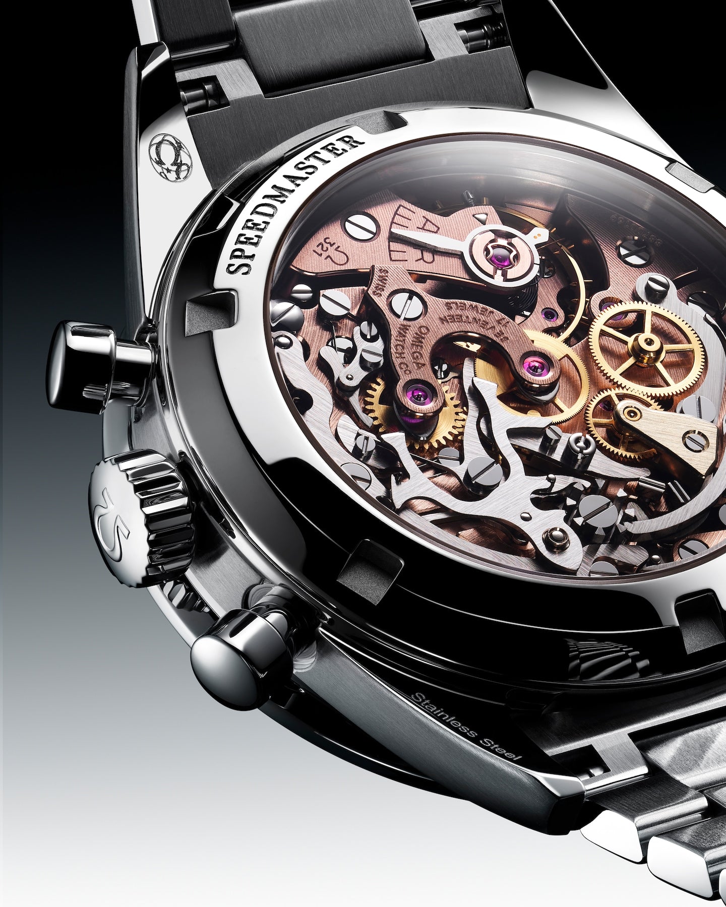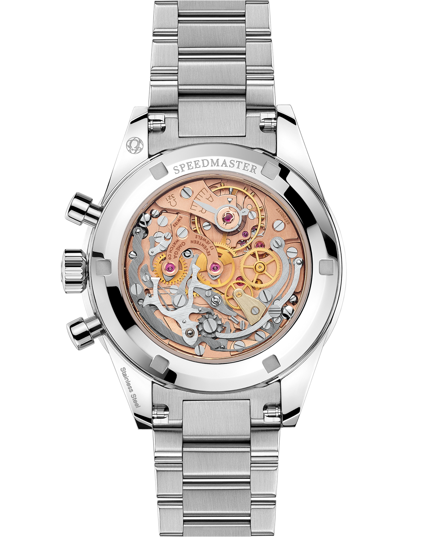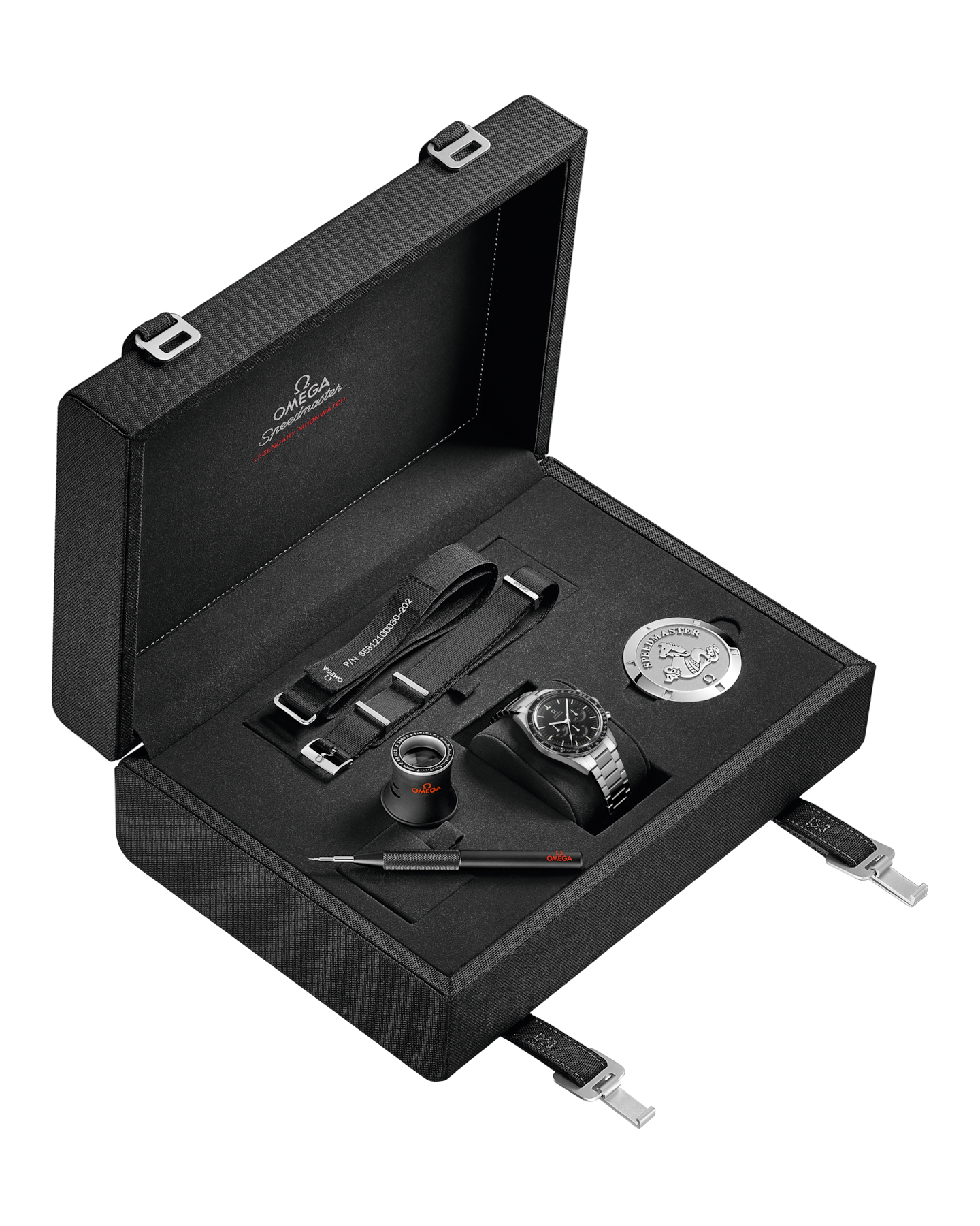 Die legendäre Omega Speedmaster, die bei allen sechs Mondmissionen dabei war, gehört zu den ikonischsten Zeitmessern der Welt. Dieses Modell ist mit dem berühmten Kaliber 321 ausgestattet, das eine bedeutende Rolle in der originalen Raumfahrtgeschichte der Speedmaster spielte. Das Edelstahlgehäuse mit einem Durchmesser von 39,7mm schöpft seine Inspiration aus dem Stil der Speedmaster der 3. Generation, die während Amerikas erstem Weltraumspaziergang im Jahr 1965 getragen wurde. Außerdem besitzt der Zeitmesser einen Lünettenring aus polierter, schwarzer Keramik [ZrO2] mit einer Tachymeterskala aus weißem Email. Das abgestufte Zifferblatt ist mit den berühmten Moonwatch-Zeigern, einem Omega-Vintage-Logo sowie einem Hilfszifferblatt für die kleine Sekunde, einem 30-Minuten-Zähler und einem 12-Stunden-Zähler zusammen mit einem zentralen Chronographenzeiger ausgestattet. Durch den Gehäuseboden aus Saphirglas ist das Kaliber 321 im Inneren sichtbar.