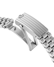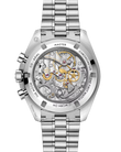 Die Speedmaster Moonwatch gehört zu den legendärsten Zeitmessern der Welt. Der beeindruckende Chronograph, der bei allen sechs Mondlandungen dabei war, verkörpert perfekt den risikofreudigen Pioniergeist der Marke. Das Armband dieser 42mm-Moonwatch aus Edelstahl weist ein Design mit fünf gebogenen, polierten und gebürsteten Gliedern pro Reihe auf. Als Uhrglas und Gehäuseboden dient Saphirglas. Das Design ist inspiriert von der 4. Generation der Speedmaster, die auf dem Mond getragen wurde. Das schwarz lackierte, abgestufte Zifferblatt mit Doppelplatine wird durch weiß lackierte Hilfszifferblätter in rhodinierten Rahmen ergänzt. Zu den Details gehören das Omega-Logo und die Indezes, Zeiger im Stil einer Moonwatch und der berühmte Punkt über der 90 auf dem schwarzen Keramiklünettenring. Angetrieben wird die Uhr vom Co-Axial-Master-Chronometer-Kaliber 3861, das neben der zentralen Chronographen-Funktion über eine kleine Sekunde, einen 30-Minuten-Zähler und einen 12-Stunden-Zähler verfügt.