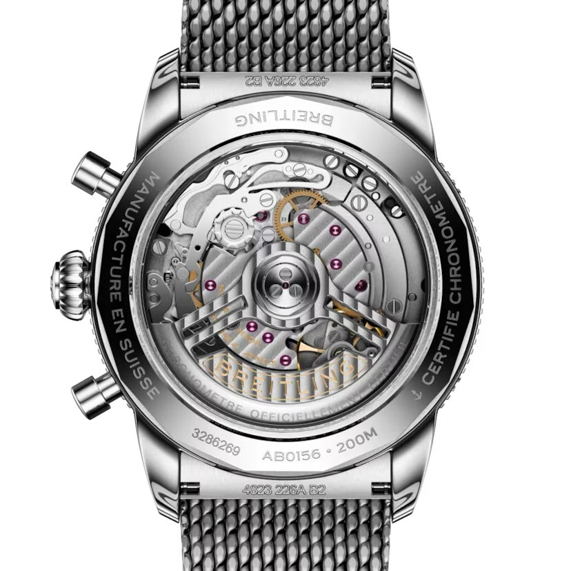 Edelstahl mit dunkelblauer Keramik-Lünette, Edelstahlband mit Doppel-Faltschließe, Automatikwerk Manufakturkaliber Breitling 01, Gangreserve ca. 70 Stunden, Chronograph, Datumsanzeige, Saphirglas, Saphirglas-Sichtboden, Durchmesser 42mm, wasserdicht bis 200m, fünf Jahre Garantie