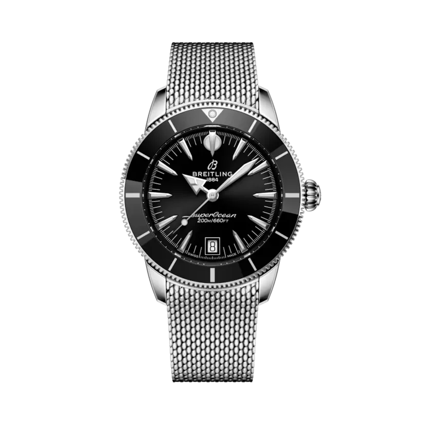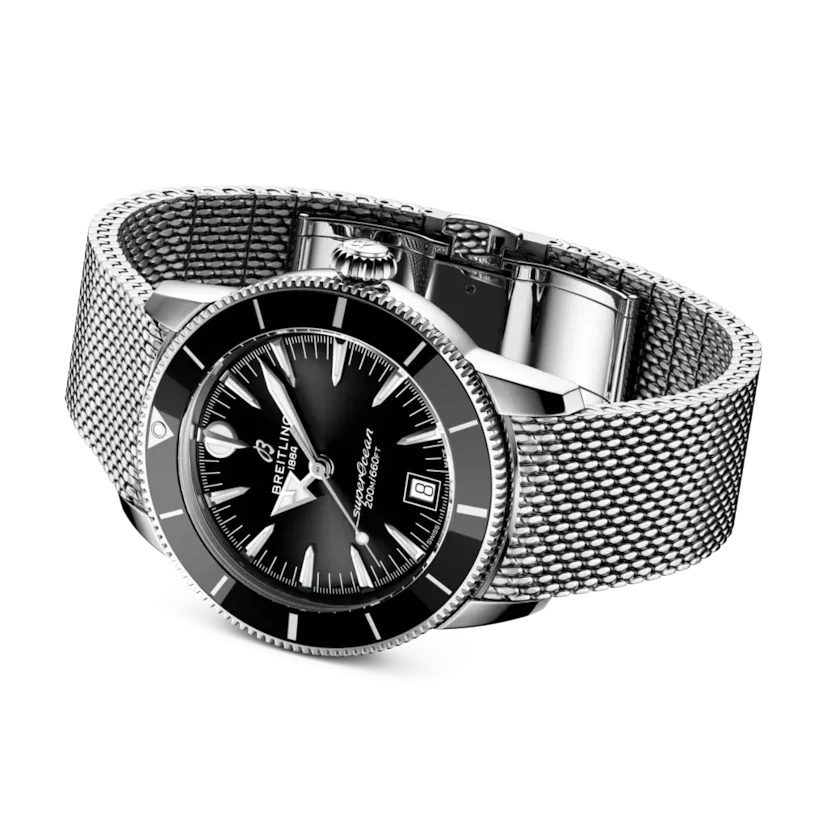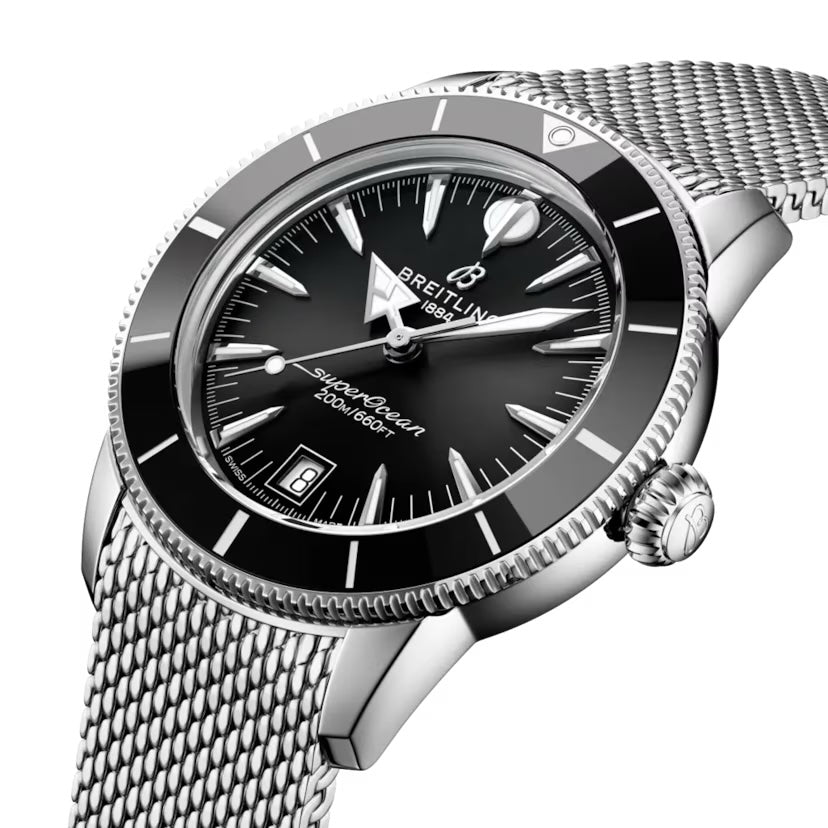Gemacht, um sich zwischen den Wellen und dem Ufer zu bewegen. Die Superocean Heritage ist keine gewöhnliche Taucheruhr. Als Breitling sie 1957 erstmals auf den Markt brachte, verfolgte das Unternehmen einen anderen Ansatz als andere Taucheruhren dieser Zeit. Bei der Ref. 1004 (einem schlanken Schmuckstück, das nur die Zeit anzeigt) und der Ref. 807 (dem weltweit ersten speziellen Tauchchronographen) ging es nicht nur darum, die Unterwasserwelt zu erkunden. Die Speer-und-Pfeil-Zeiger, die eloxierte drehbare Lünette und die natürlich schlanken Proportionen machten sie schnell zu einem Favoriten von stilvollen Abenteurern, die für das Meer und die Szene lebten. Auch heute noch ist diese Philosophie das Herzstück der Superocean Heritage. Die Seele der 50-er Jahre, aber im neuen Kleid für die Gegenwart. Die neueste Superocean Heritage baut auf allem auf, was das Original unverwechselbar gemacht hat, und verfeinert es. Die Kollektion führt das Automatik-Uhrwerk B31 ein, Breitlings erstes exklusives Manufaktur-Kaliber mit drei Zeigern. Eine Lünette mit Keramikeinlage bietet außergewöhnliche Kratzfestigkeit, während die integrierten Armbänder aus Mesh-Metall oder Mesh-Kautschuk eng am Gehäuse anliegen und mit Faltschließen für ein sauberes, wasserdichtes Finish gesichert werden. Ein diskretes Datumsfenster auf sechs Uhr und die originalen Signaturzeiger – Pfeil für die Stunden, Speer für die Minuten – sorgen für Ablesbarkeit und Ausgewogenheit, über oder unter der Oberfläche.