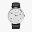 Durchmesser 41mm, Automatikwerk, Gangreserve ca. 42 Stunden, Saphirglas, Sichtboden, Datumsanzeige, schwarzes Lederband mit Dornschließe, spritzwassergeschützt,